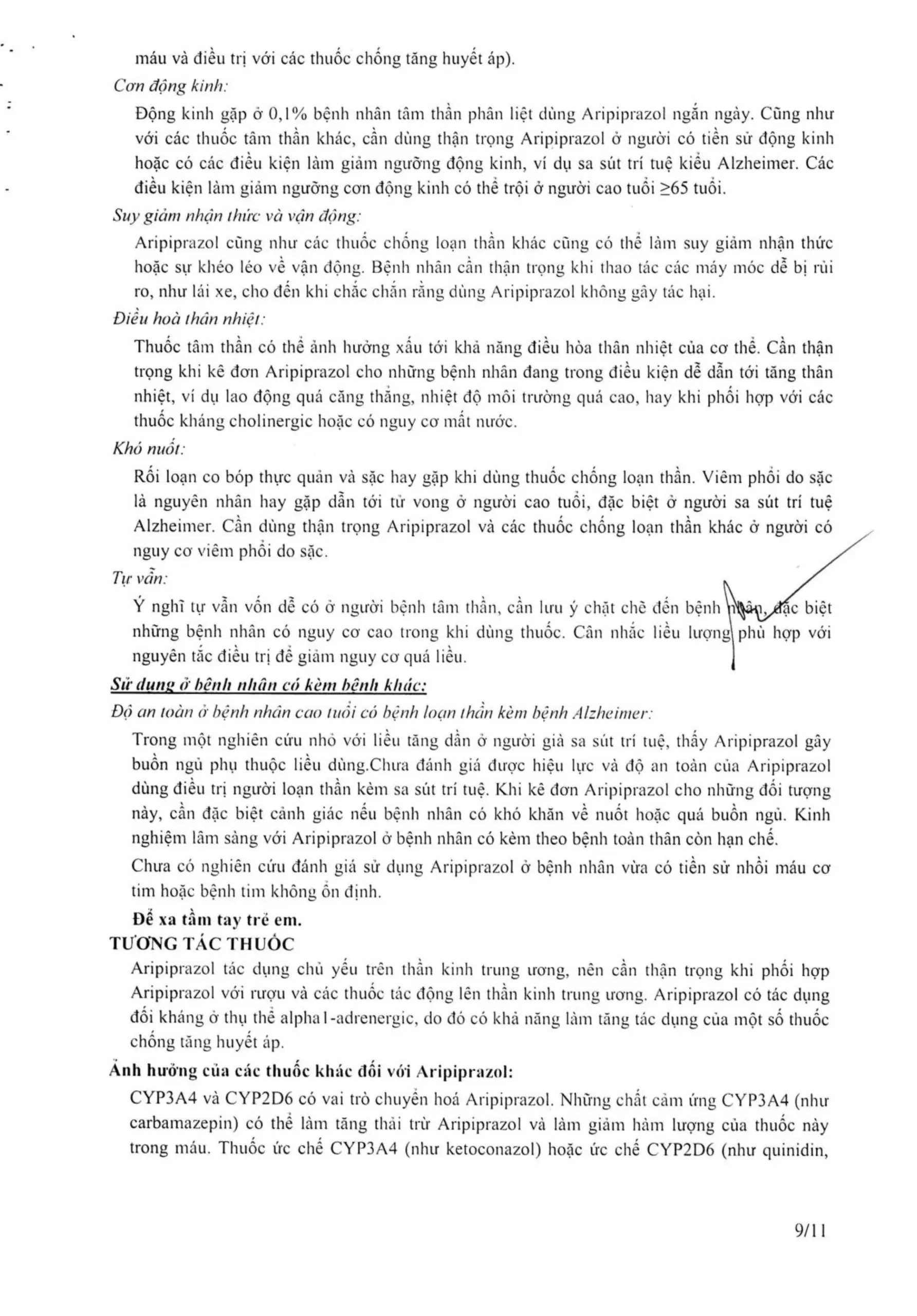 - Aripiprazol tác dụng chủ yếu trên thần kinh trung ương, nên cẩn thận trong khi phối hợp aripiprazol với rượu và các thuốc tác động lên thần kinh trung ương.
