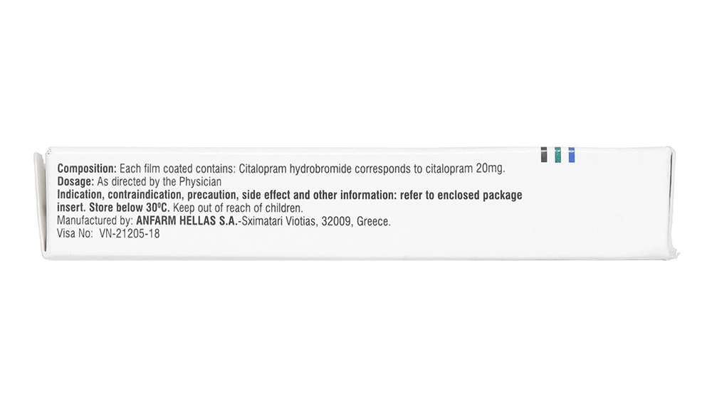 - Thực phẩm: Sự hấp thu và các đặc tính dược động học khác của citalopram không được báo cáo là bị ảnh hưởng bởi thức ăn.