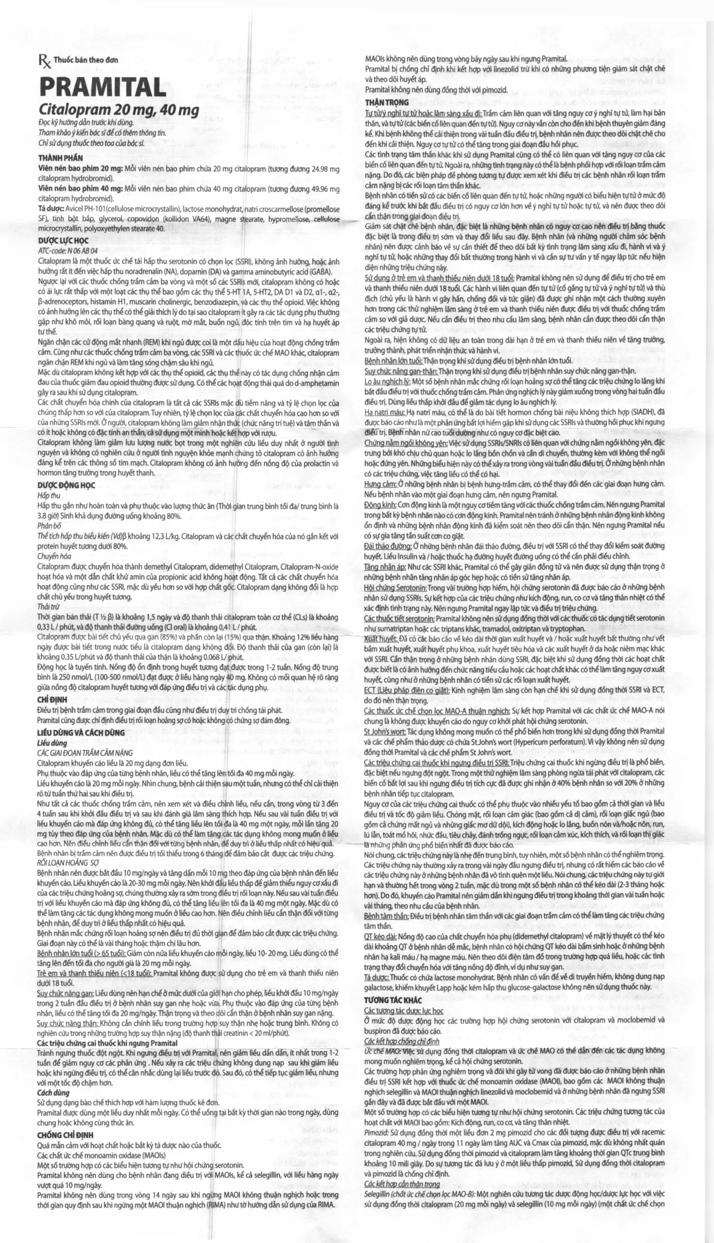 - MAOIs không nên dùng trong vòng bảy ngày sau khi ngưng Pramital.