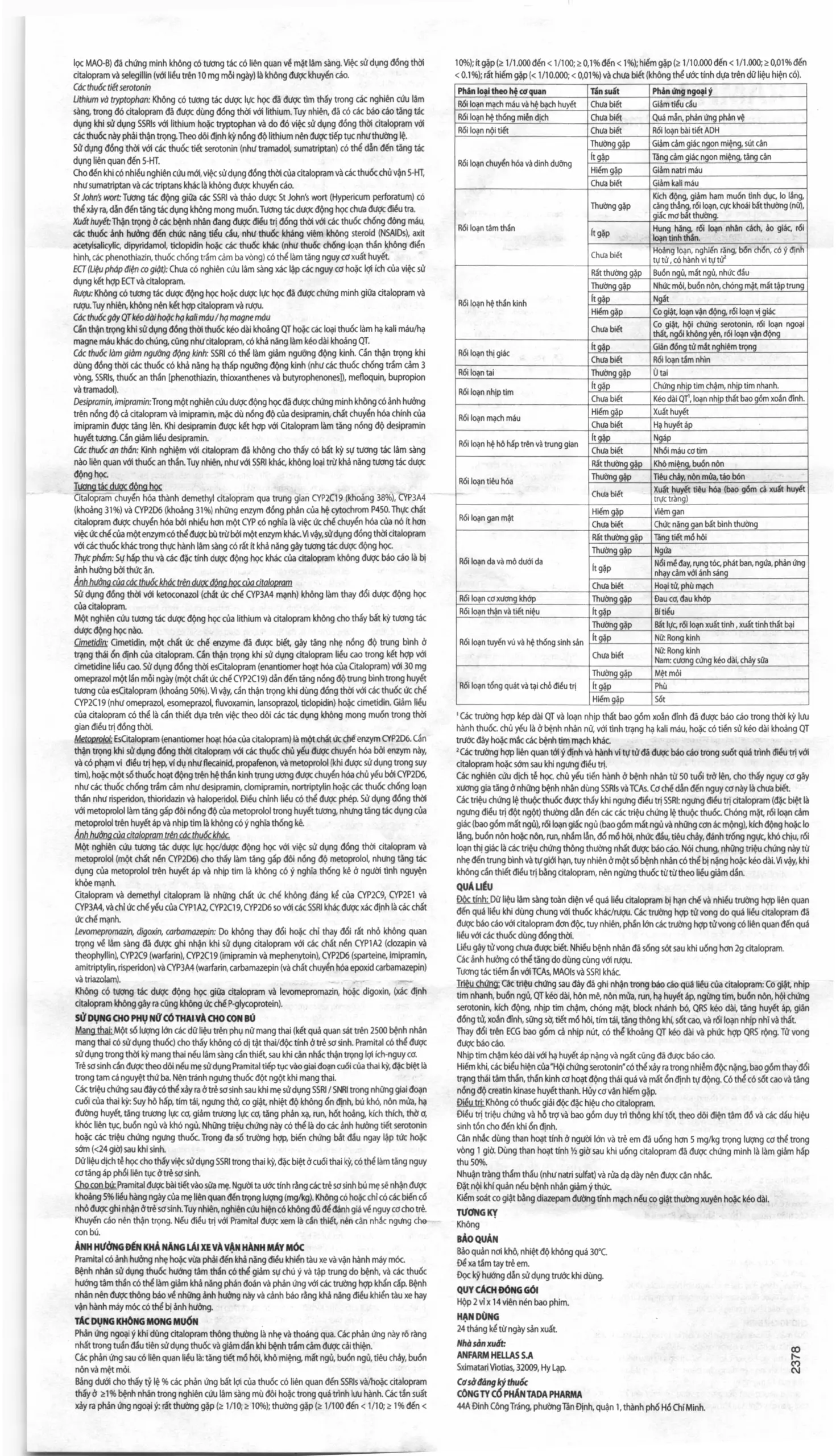 - Dữ liệu lâm sàng toàn diện về quá liều citalopram bị hạn chế và nhiều trường hợp liên quan đến quá liều khi dùng chung với thuốc khác/rượu. Các trường hợp tử vong do quá liều citalopram đã được báo cáo với citalopram đơn độc, tuy nhiên, phần lớn các trường hợp tử vong có liên quan đến quá liều với các thuốc dùng đồng thời.