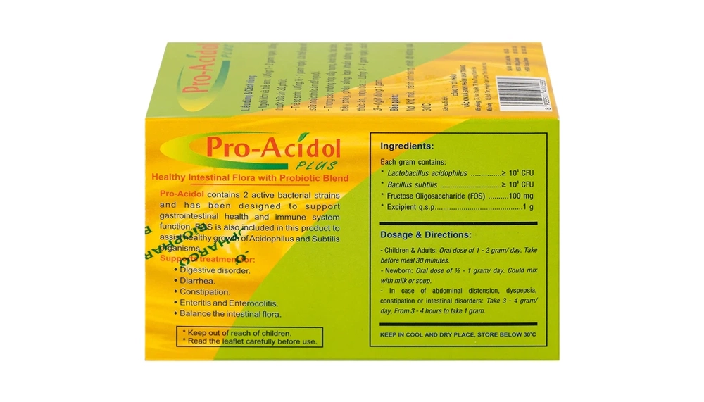 - Pro – Acidol Plus 50 gồm 2 chủng vi khuẩn có ích cho đường ruột nên có hiệu quả tác dụng cao nhờ tái lập nhanh trạng thái cân bằng hệ vi sinh đường ruột thông qua cơ chế sau: