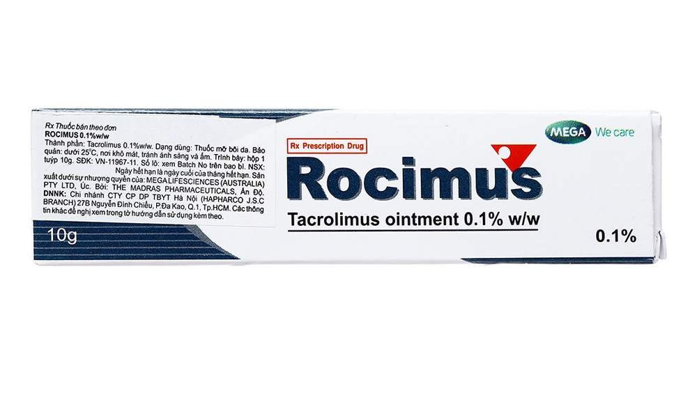 - Bôi thuốc mỡ Tacrolimus 0,1% lên vùng da bị tổn thương và xoa bóp nhẹ.