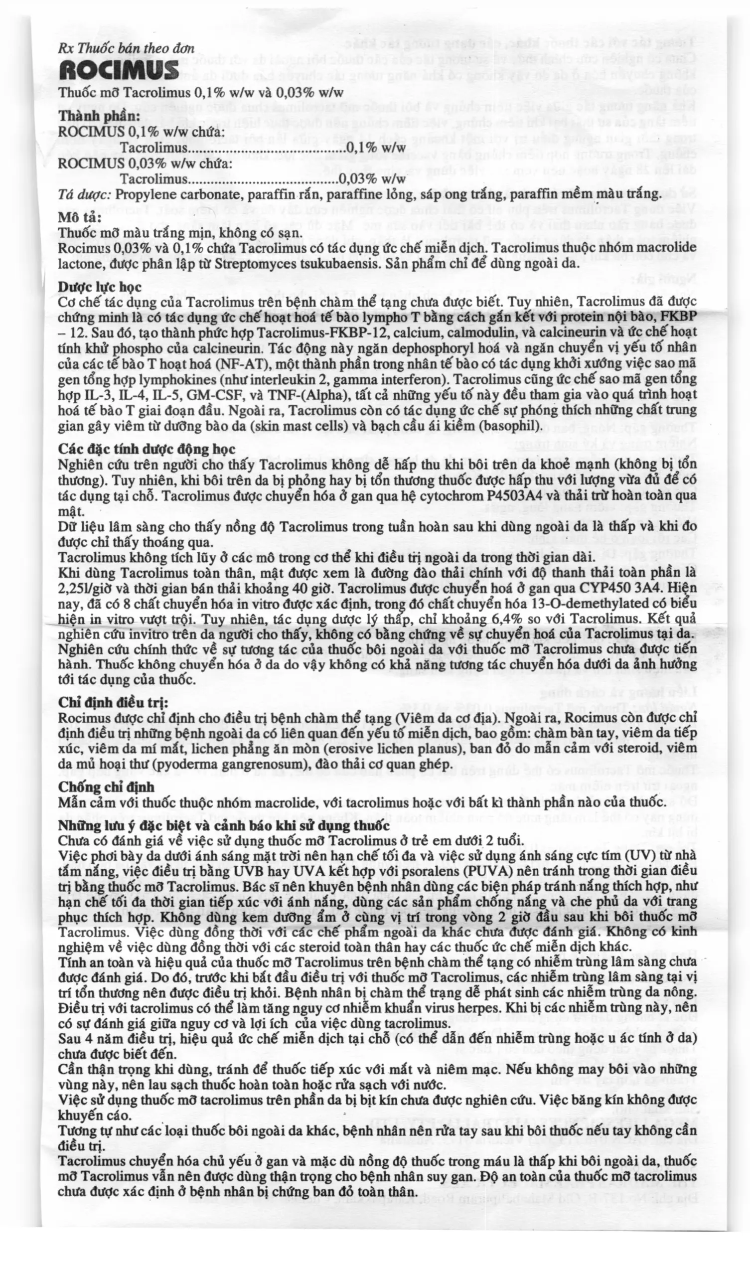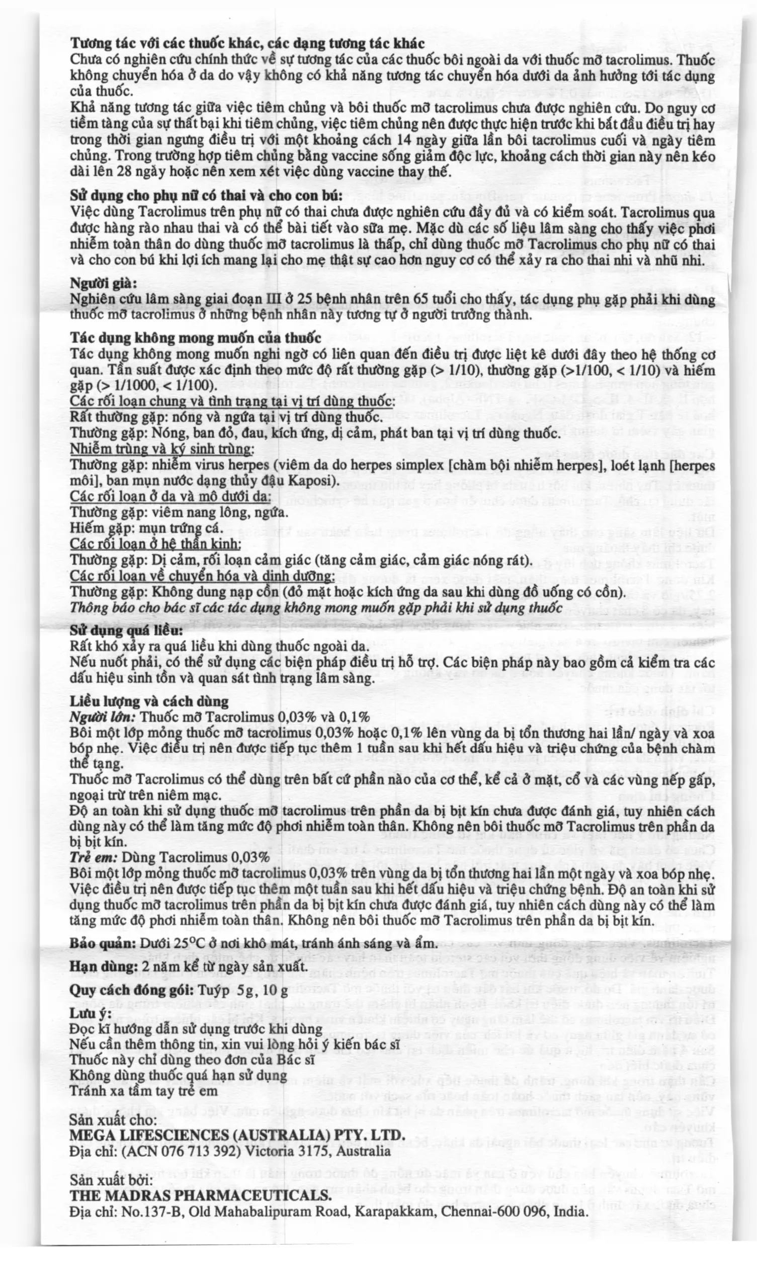 - Chưa có đánh giá về việc sử dụng thuốc mỡ Tacrolimus ở trẻ em dưới 2 tuổi.