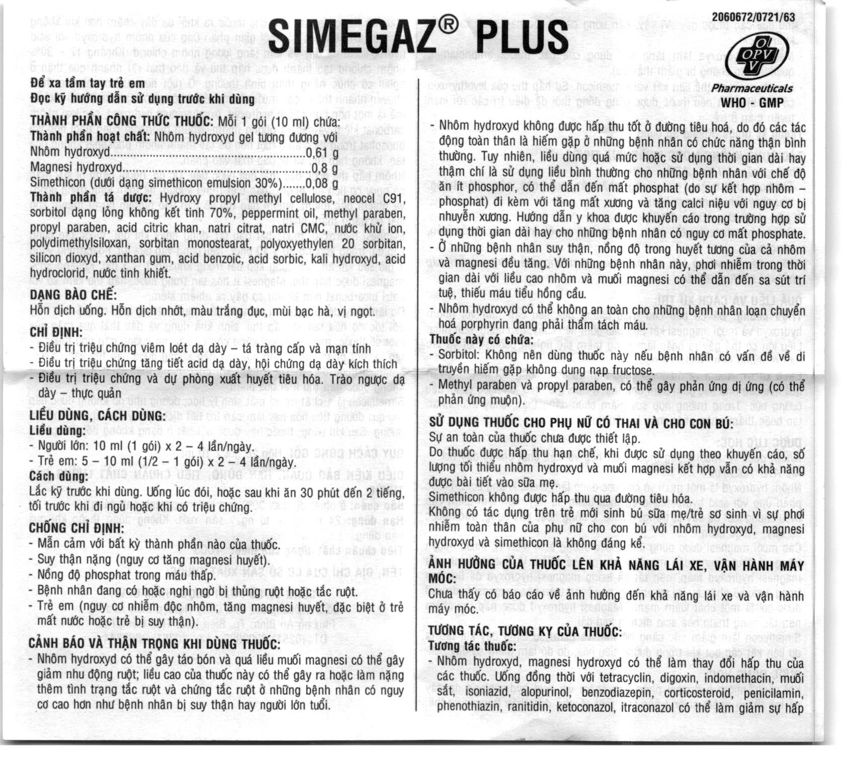 Simegaz Plus OPV 20 gói – Thuốc điều trị viêm loét dạ dày