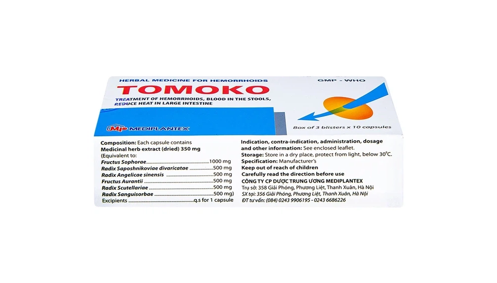 - Tomoko có tác dụng thanh trường, sơ phong nhiệt, lương huyết, làm bền vững thành mạch chống chảy máu, giảm đau rát, co búi trĩ.