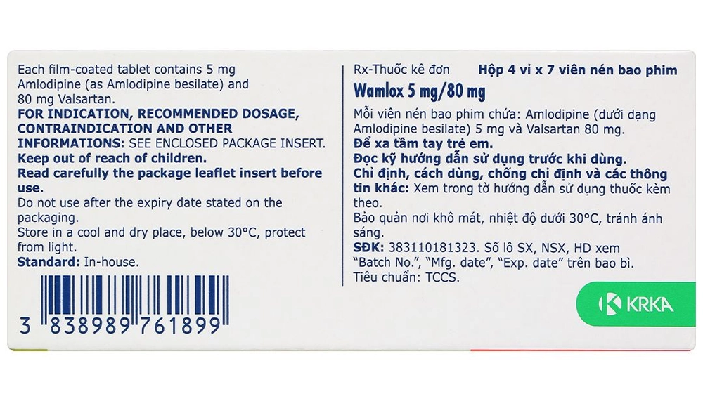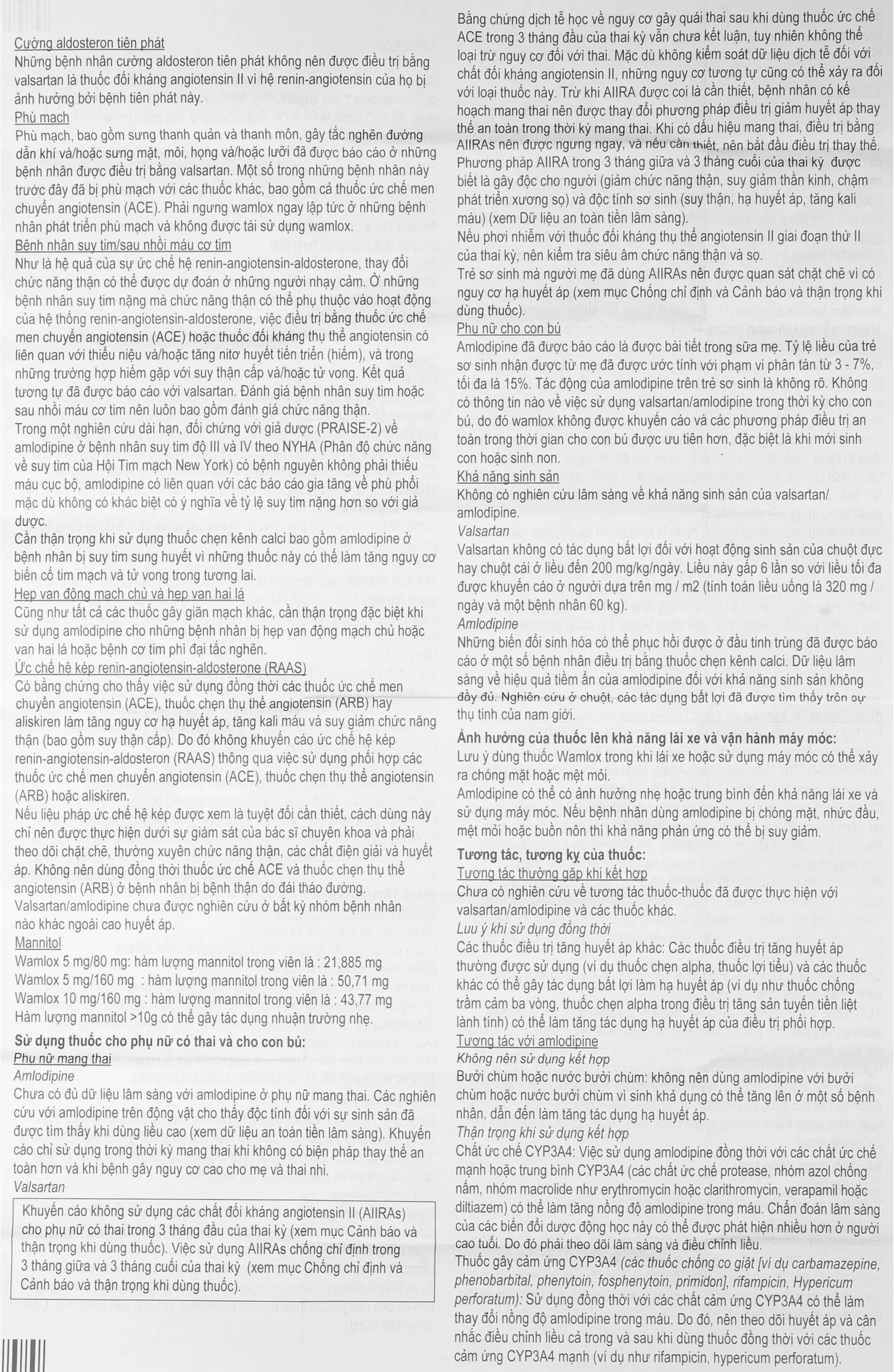 - Để thuận tiện, những bệnh nhân đang dùng valsartan và amlodipine có thể chuyển từ dạng viên nén/viên nang riêng lẽ sang wamlox chứa cùng liều của các thành phần này.