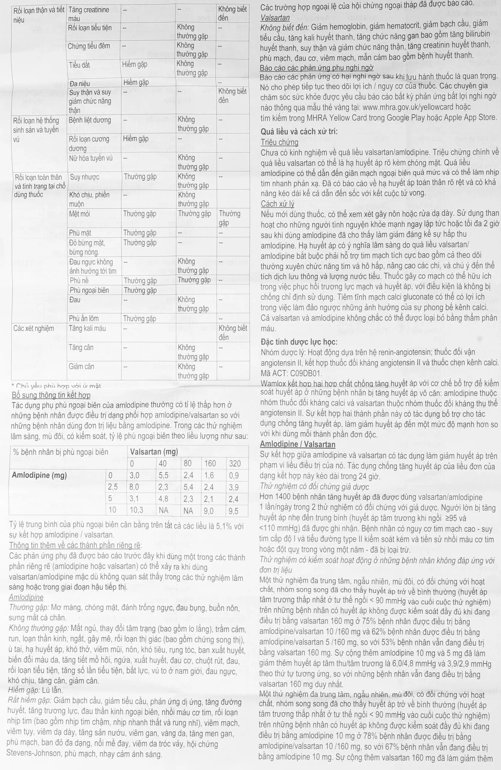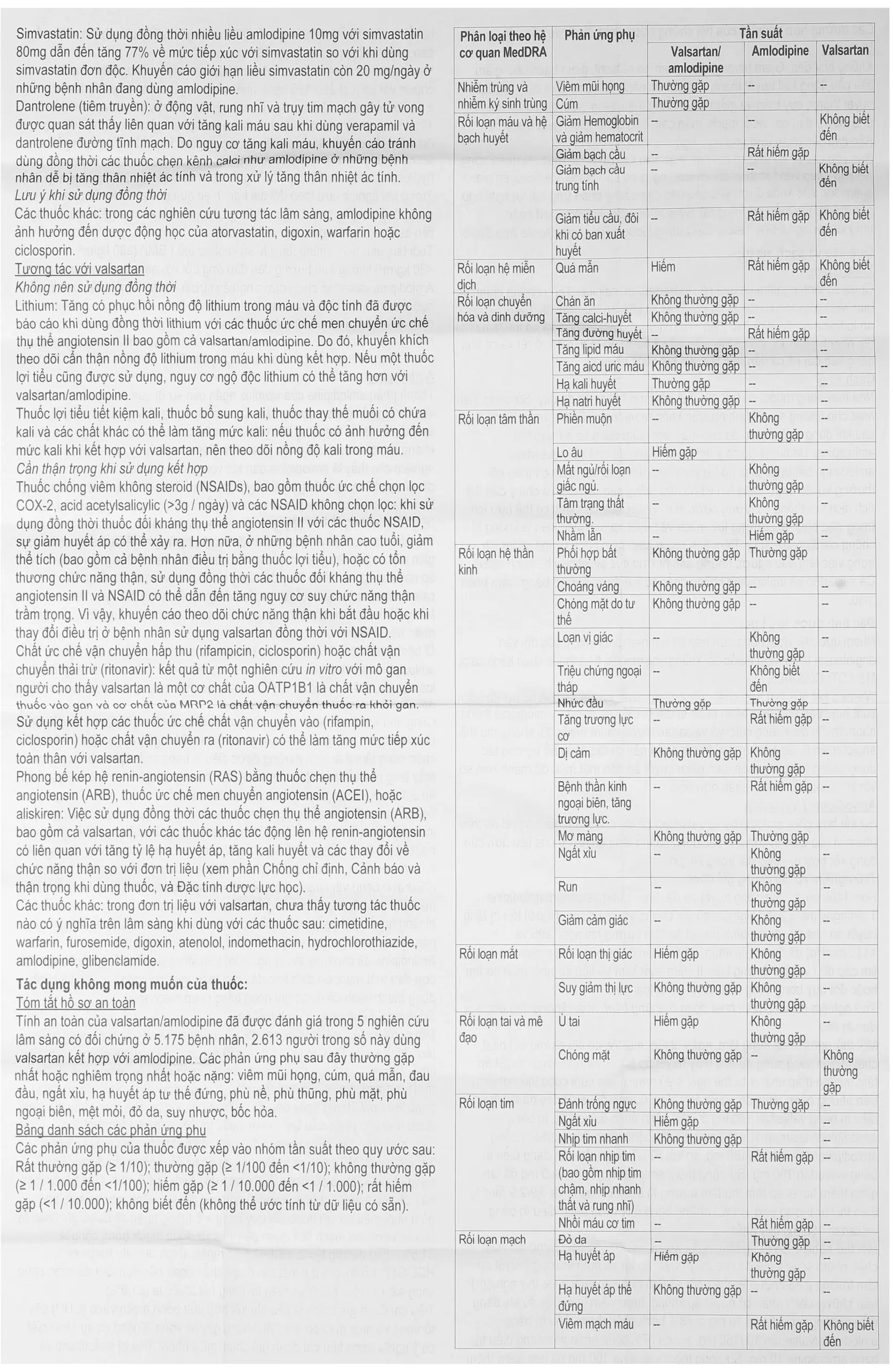 - Tính an toàn của valsartan/amlodipine đã được đánh giá trong 6 nghiên cứu lâm sàng có đối chứng ở 5.175 bệnh nhân, 2.613 người trong số này dùng valsartan kết hợp với amlodipine.