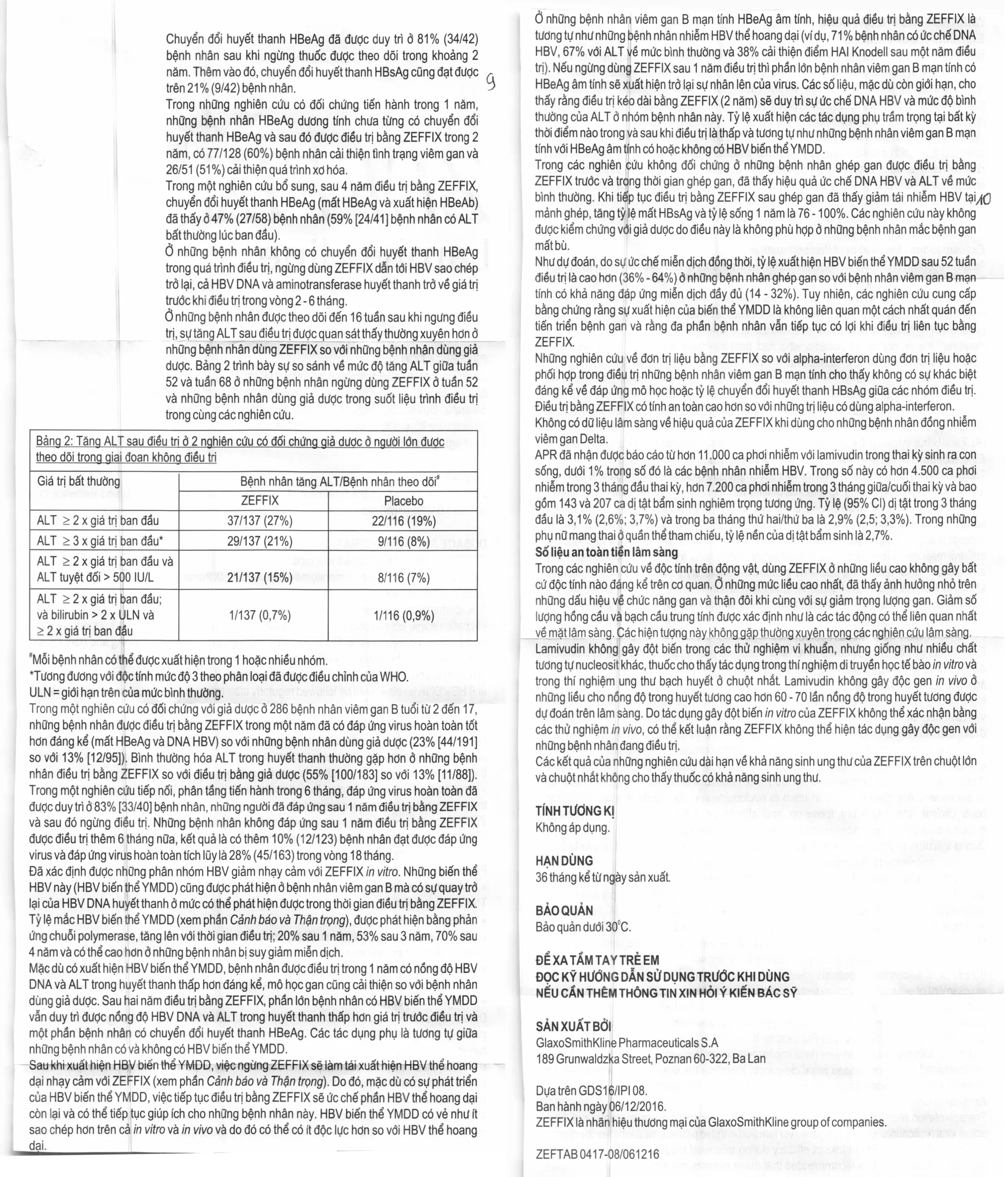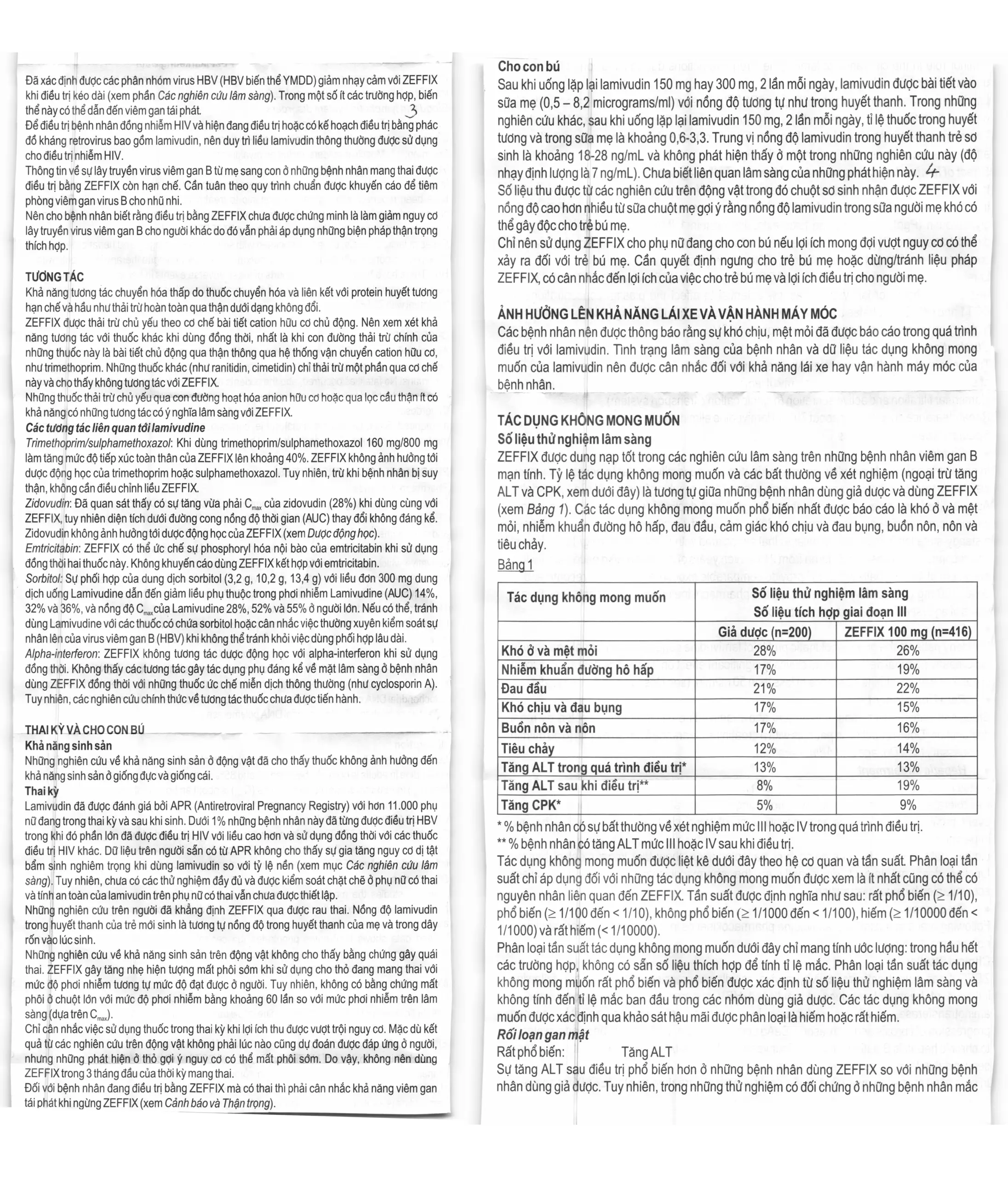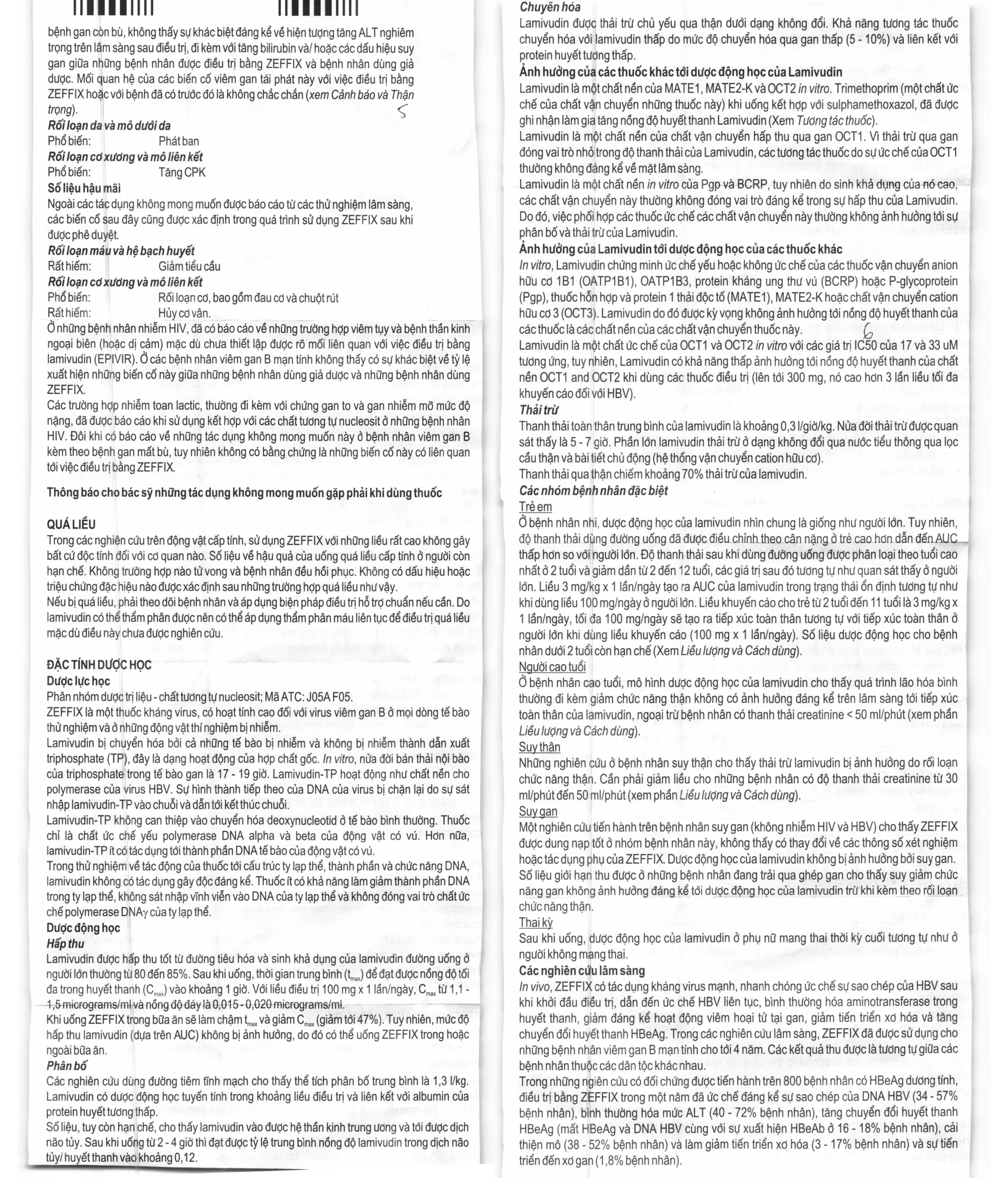 - Không thấy có thay đổi về các thông số xét nghiệm hoặc tác dụng phụ của Zeffix. Dược động học của lamivudin không bị ảnh hưởng bởi suy gan.