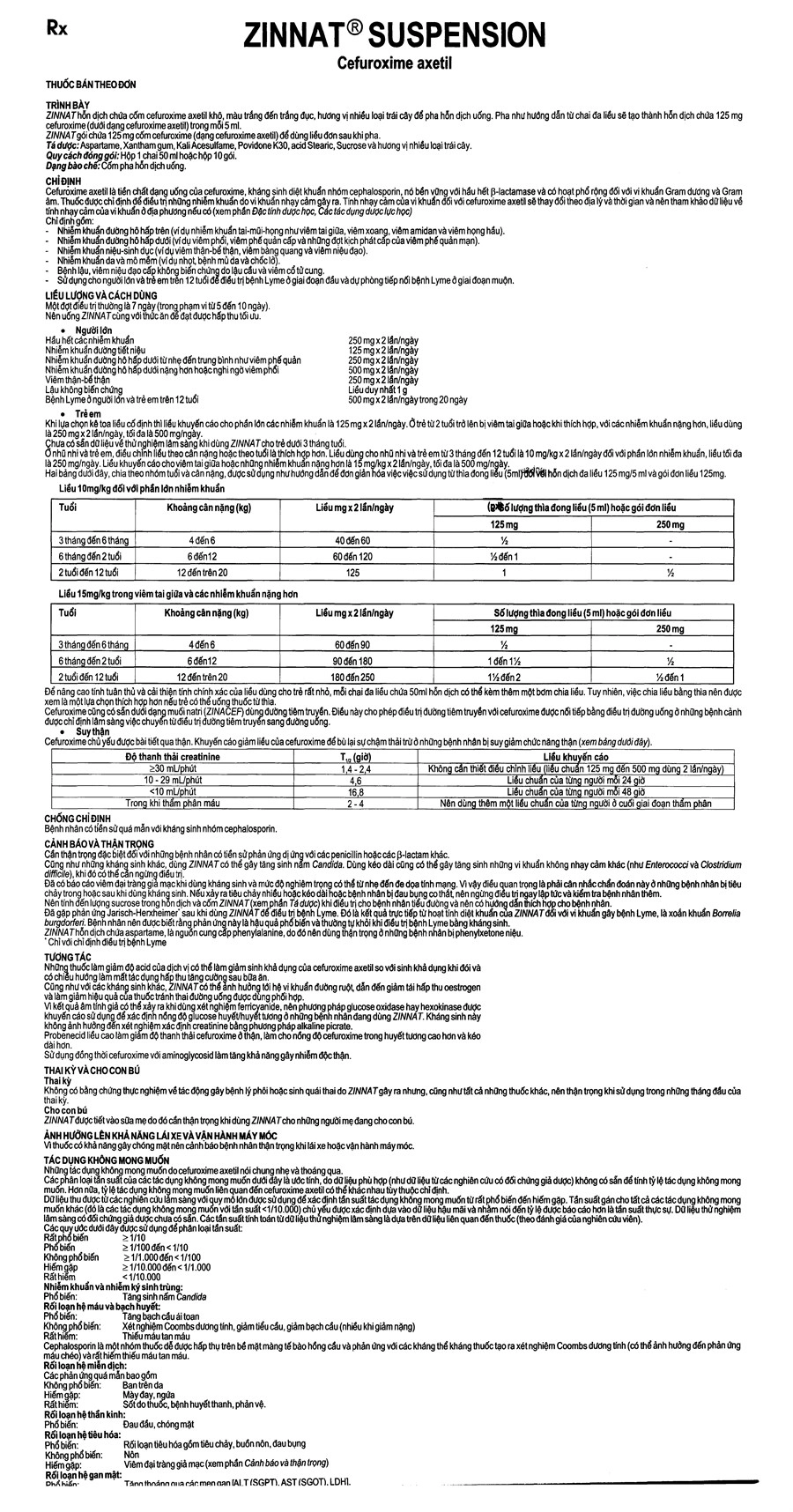 Zinnat Suspension 125mg GSK 50ml – Thuốc điều trị nhiễm khuẩn